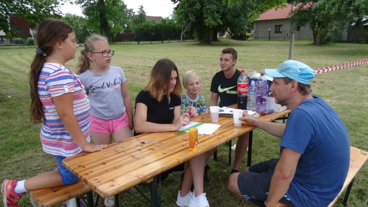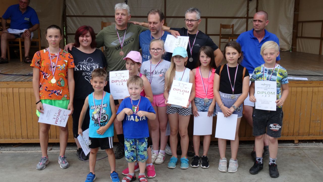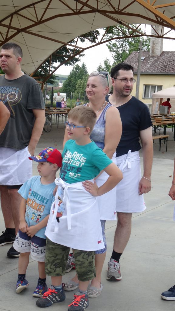 Najmä preto, že počas dňa sa konal aj Obecný športový deň detí, na ktorom mohol súťažiť každý, kto dieťa je alebo bol – teda všetci. Záštitu nad športovými súťažami prebrala riaditeľka základnej školy Mgr. Andrea Polhorská, ktorá osobne dozerala a organizovala súťaž v behu. Doobeda sa veľkému počtu ľudí bežať nechcelo, preto sa napríklad všetkým deťom v rámci ich kategórií ušli väčšinou zlaté medaily, keďže vo svojej kategórii boli jediní súťažiaci. Tvrdý bežecký súboj sa očakával v kategórii mužov a možno sa aj v mysliach 5 bežcov odohrával, ale reálne - plážové obutie niektorých bežcov či ležérne tempo pri dobehu do cieľa tomu nezodpovedali. Bohužiaľ, v kategórii žien sa nenašla ani 1 dáma, ktorá by mala čas a trasu prešla aspoň pešo. V areáli ihriska sa síce nachádzalo dosť účastníčok majstrovstiev, ale tie mali v tom čase plné ruky práce s prípravami stanovíšť a chystaním surovín. Poobede sa však karta obrátila, mnohí páni a viaceré dámy po začatí varenia, keď bolo všetko pokrájané a v kotloch už čosi bublalo, prejavili záujem o súťaž v streľbe, ktorá začala po 12. hodine rovnako ako samotné majstrovstvá. Streleckej súťaži už tradične velil Dušan Pelech, ktorý so svojím tímom pohotovo zareagoval na vzniknutú situáciu a vytvoril kategórie naviac pre mužov a ženy nad 60 rokov. Po skončení športovania deti boli odmenené sladkosťou a ovocným nápojom a v rámci vyhlásenia výsledkov starosta obce Jaroslav Mego porozdával všetkým diplomy a medaily. Nedá mi nepochváliť sa výsledkami obecného úradu - starosta vybehal jednu medailu v rámci bežeckej súťaže a v rámci streleckej súťaže medailu získali hneď 2 zamestnankyne obecného úradu (takže pozor na nás).