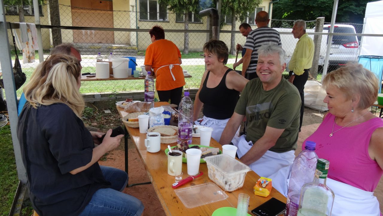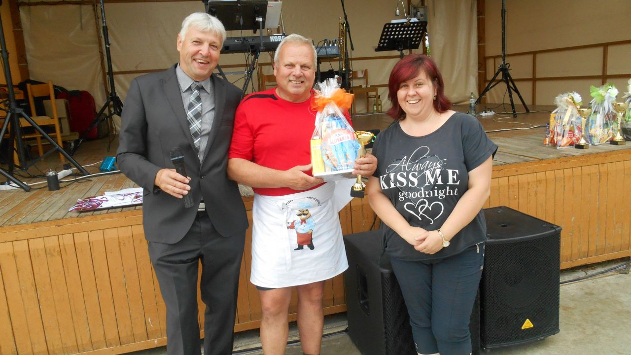 Toto všetko sledovali popoludní rodičia s deťmi, ktoré sa prišli vyšantiť na skákacom hrade, povoziť na koňoch a vylietať do sýtosti na ihrisku. Niet divu, že po 16. hodine deťúrence dokázali sedieť ako päť peňazí a baviť sa na programe, ktorý pre nich predvádzal šašo Ľuboš. To už sa areál zapĺňal všetkými vekovými kategóriami, pretože sa blížila hodina, kedy museli byť guláše dovarené a pripravené k odberu vzorky na hodnotenie. Kým ostatní si náhodným výberom vybrali guláš, na ktorom si pochutnávali, 6 členovia poroty sa zhostili zodpovednej úlohy a postupne ochutnali a ohodnotili všetkých 12 gulášov. Našťastie ma všetci poslúchli a prišli hladní, takže im ani posledný guláš nešiel hore krkom a v plnej sústredenosti pridelili body za celkový vzhľad, chuť, vôňu a farbu. Už len záverečné spočítanie bodov a bolo rozhodnuté. Víťazom sa suverénne stalo družstvo Rutex, ktorého guláš dostal maximálny počet bodov od všetkých porotcov. Na druhom mieste sa umiestnil Kaštieľ, tretie miesto obsadilo Poľovnícke združenie Žľab a štvrté miesto patrilo Spolku turistov a milovníkov prírody. Návštevníci si pochvaľovali aj guláše ostatných družstiev (Obec Drietoma, AS Team Adamovské Kochanovce, Slovenský červený kríž, Jednota dôchodcov, Veselý vidiek + Hokejisti, Osada Brúsne, STK Euro, COOP Jednota) a aj im patrí vďaka za vytvorenie dobrej atmosféry, ktorá panovala na ihrisku po celý deň. Vďaka patrí aj Milanovi Bátovskému a Ľubošovi Surovskému, ktorí sa postarali o hudobný podmaz až do začiatku zábavy. No a zábava pod taktovkou hudobnej skupiny Tex-Band Ľuboša Opatovského bola perfektným ukončením tohto podujatia. Ich „hudobný recept“ striedania ľudového kola s moderným na nás všetkých zaberal a tak bol tanečný parket plný až do konca zábavy.