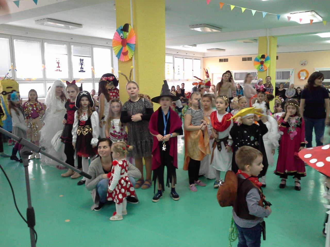 Po minuloročnej výbornej skúsenosti s priestorom jedálne sme ani neuvažovali nad iným miestom konania. A dobre sme urobili, pretože spolu so 65 deťmi prišlo veľa rodičov a starých rodičov a v jedálni sme ich bez problémov mali kde usadiť. Recept na toto vydarené podujatie máme dobrý a upravujeme ho len v minimálnej miere – teda najskôr registrácia masiek, rozdelenie detí podľa veku do 3 kategórií, určenie porotcov, privítanie masiek a ich predvedenie počas niekoľkých pesničiek, súťaže pre deti v jednotlivých kategóriách, rôzne hry, spoločné tancovanie, šantenie, priebežne počas toho batôžkové občerstvenie (teda kto si čo prinesie, čaj a minerálka býva zabezpečená), fotenie s kamarátmi, rodičmi a s maskotmi podujatia. Všetky deti dostali za účasť pamätný list a hárky so samolepkami podľa vlastného výberu, no a okrem toho vo všetkých 3 kategóriách porota určila 3 najkrajšie masky. Z roka na rok pribúdajú ručne robené, veľmi originálne masky, preto sa aj porotcom z roka na rok rozhoduje ťažšie, dokonca sa ocenili nejaké masky naviac ako špeciálne ceny.